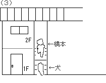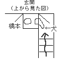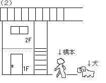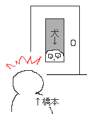 そして鍵を開け、玄関に入って後ろ手でドアを閉めようという時(左図)この犬も巧みに玄関の中に移動したのでしょう。