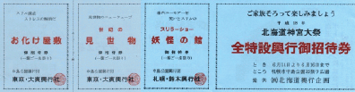 ところで私はひょんなことから、職場の部下である吉野係長から、「お化け屋敷」とか「見世物小屋」の無料券が綴りになった「全特設興行御招待券」なる素晴らしいクーポン券を一枚譲り受けました。|