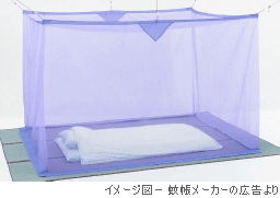 毎年おびただしい数の蚊にやられているので、今年は通信販売で蚊帳を購入したのです。