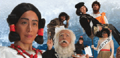 左はその一例、「ヤマトタケル編」です。→Click イメージキャラクター縄文太郎君は、着ぐるみなのかロボットなのか分からぬ異様なシルエットで登場。そこにヤマトタケルさんがねっとりと絡み、最後にクレオパトラさんが唐突に出てきてトドメを刺すという、息もつかせぬ展開。 受験戦争の厳しさを表現していると思われる背後の波しぶきですが、CMの出来とも相まって、終盤はマグマが怒り狂っているようにも写ります。 このCMを見て、