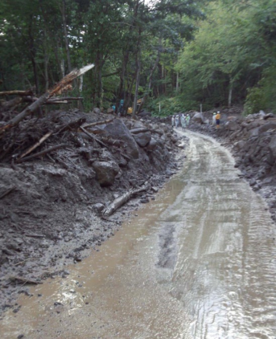 写真は現地から送られてきた、孤立した支笏湖畔の丸駒温泉に向かって国道453号の土砂崩れの中を進む「啓開」(道路を開いていくことを言います)の写真の一部です。