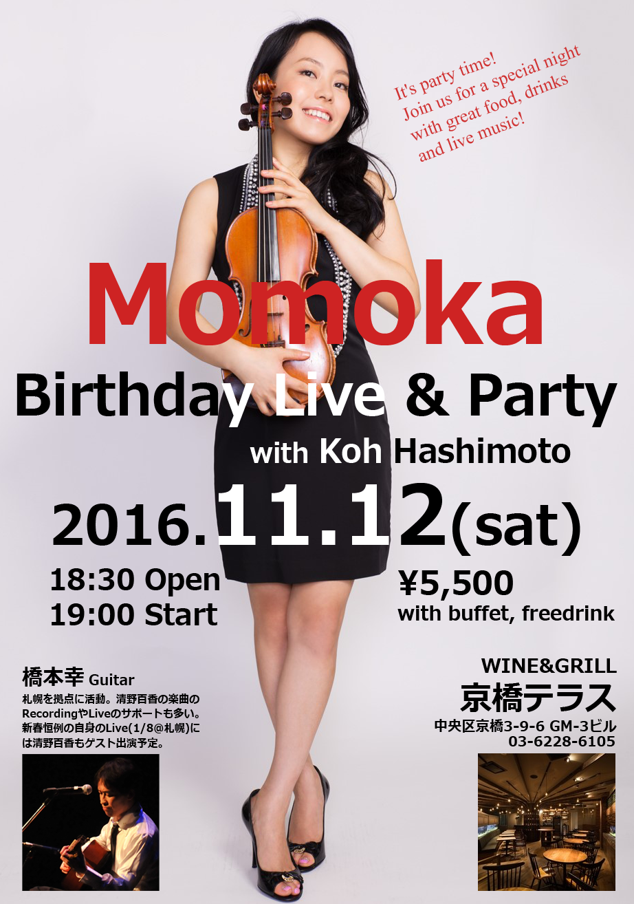 さて、東京は秋とは思えぬほど暑いとのことですが、同じ北国出身のミュージシャン・清野百香さんのライブのサポートのご依頼をいただきました。
