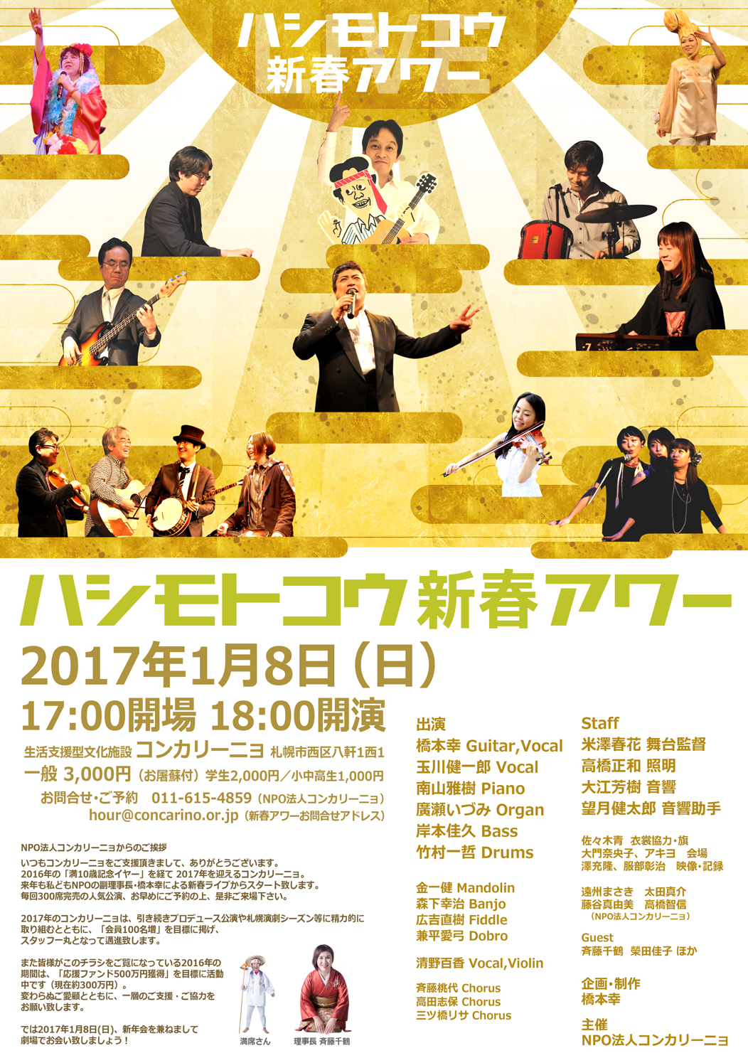 さて、このようにお礼を申し上げておきながら、タイミング的に大変厚かましいのですが、本日より謹んで「LIVEハシモトコウ新春アワー」のお知らせとご予約の受付をさせて頂きます。