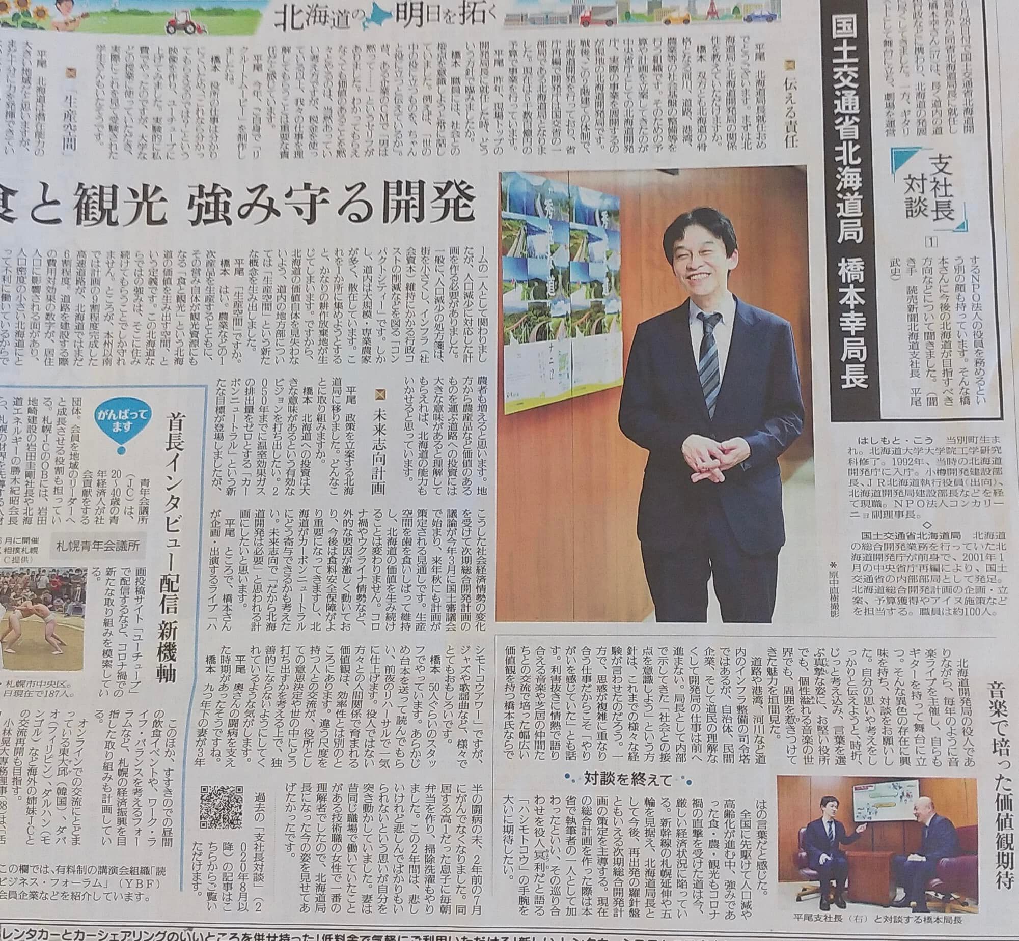 読売新聞北海道支社の平尾新支社長による「支社長対談」。映えある第一弾に私なんぞをご指名いただき、本日朝刊に掲載されました。 事前にこのサイトからWikipedia、YouTubeに至るまで、私のB級な情報を全て収集した上での人選とのこと。 「攻め過ぎでは…」と逆に私のほうが心配になります。 対談後記も「音楽で培った価値観期待」という角度からの見出しで、平尾支社長のイカした感性にこそ注目です。 妻の事を聞いて良いかをわざわざ確認して下さるなど、隅々までこちらに寄り添った取材をして下さいました。 売上に貢献することでしかお礼できないので、道内の皆さん、是非コンビニ等でご購入下さい。 平尾支社長、読売新聞の皆さん、ありがとうございました。 web site |