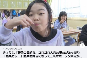 以前書いた8月の「壮幸会」で謎の登場をした長女は、今年小学校の先生になって、網走市の小学校低学年の担任を持たせていただいています。 昨日は、その網走の「野菜の日給食」なる日だったようで、自分のクラスの模様をTV番組が取り上げてくれたと知らせがありました。 HBC 今日ドキッ! 彼女は受け持っているクラスの子達が余程可愛いらしく、いつも沢山写真を送ってきては「この子は○○さんと言ってね」と長々教えてくれるのですが、その子達が野菜カレーを食べながら嬉しそうにしている姿を見ることができ、私もお得に嬉しくなりました。おかわりでみんなが並んでいるのも可愛過ぎます。 他方で長女本人に対しては「もっと姿勢良く対応すりゃ良いものを…」とかハラハラしっ放しなのですが、この"不束な感じ"は既に皆さんも良くご存知なので、気にせず共有させていただきます。 |